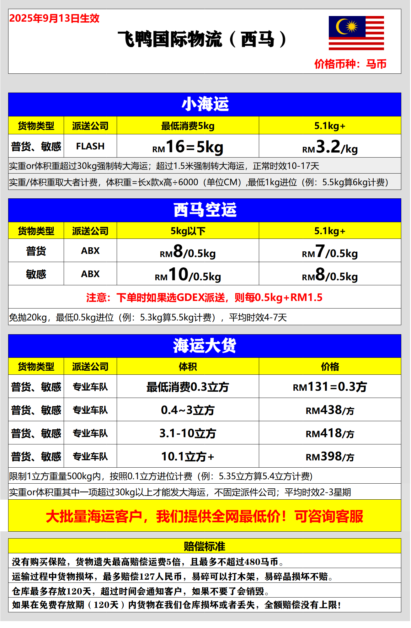 西马.空运.普货.GDEX派送